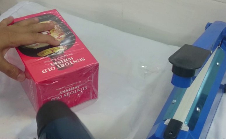 Dùng màng PVC/POF bọc thủ công với súng nhiệt cầm tay