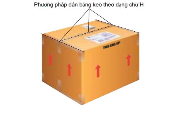Dán thùng theo hình chữ H bằng cách tạo đường 1 chính giữa + 2 đường dọc thùng nhằm cố định kín toàn bộ phần nắp, giúp hạn chế tối đa bụi, ẩm xâm nhập
