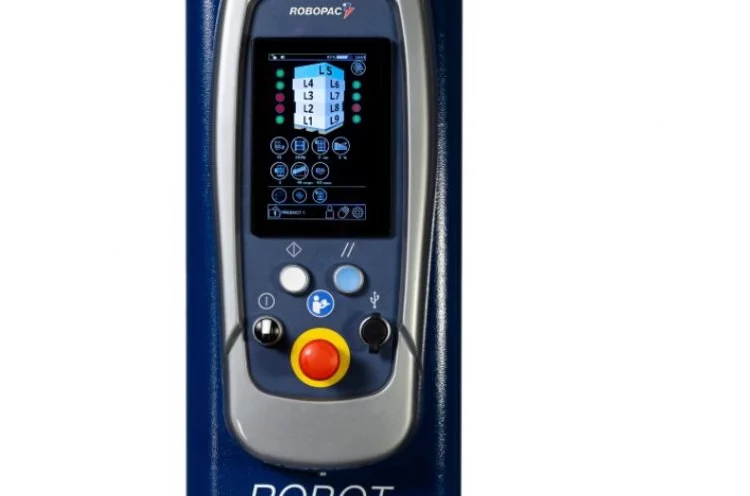 - 7” touchscreen interface, automatic film cutting, integrated safety sensors.