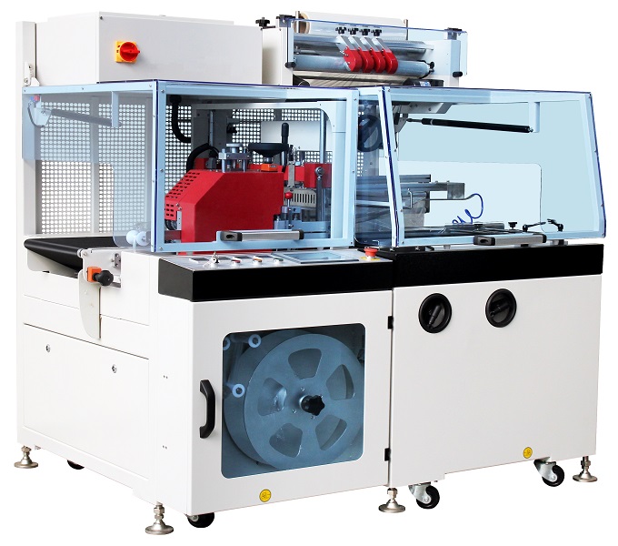 - Máy cắt co màng thích hợp cho đóng gói màng co kín tự động hoàn toàn, dao cắt ngang sử dụng ổ trục thẳng đứng và dao cắt dọc sử dụng dao hàn kín nhiệt độ không đổi, sau đó gấp màng và niêm phong 3 bên.