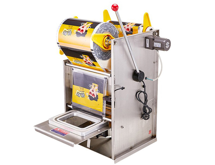 Máy dán hộp vuông thực phẩm là thiết bị chuyên dụng để dán màng seal, màng ép nhiệt, hoặc tem nhãn niêm phong lên các loại hộp vuông – chữ nhật bằng nhựa PP, PET, PS, HDPE, phục vụ cho ngành: